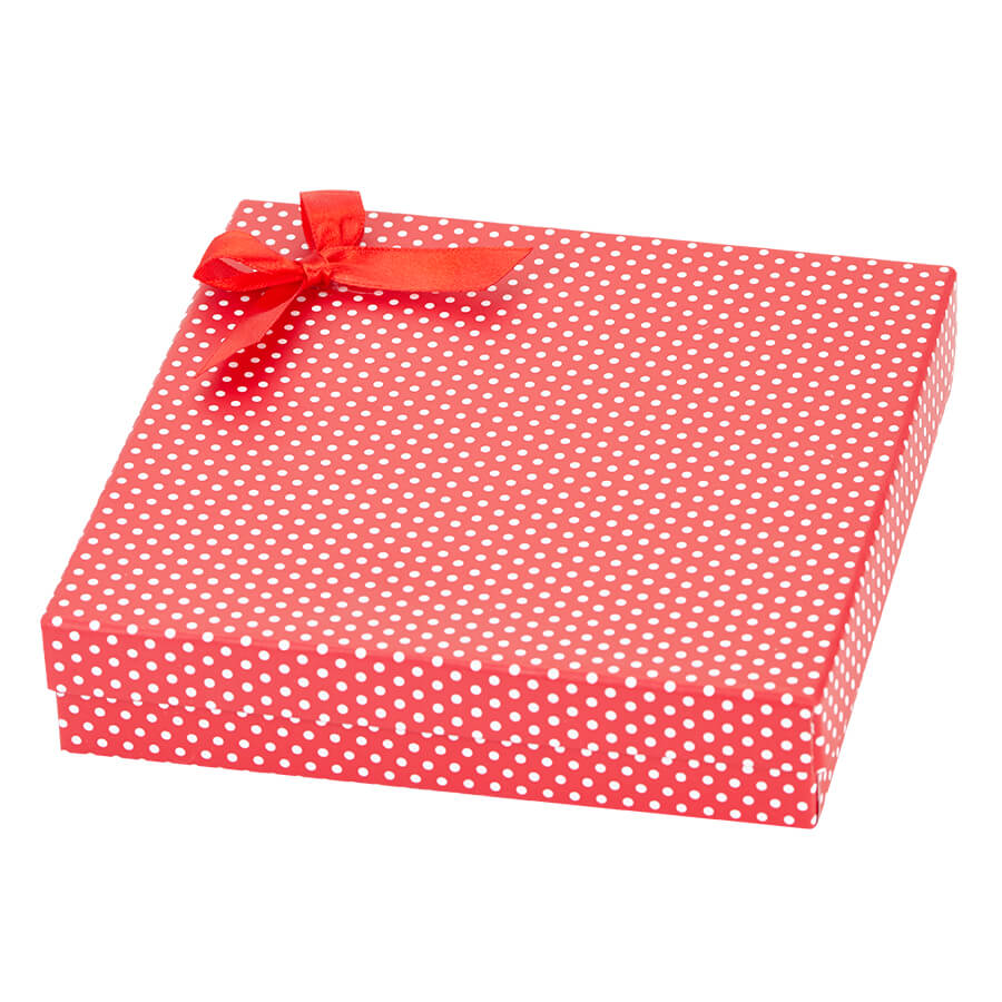 Dimenzije 145 x 145 x 30 mm Vsebnost ogrlica, verižica, komplet Pakiranje info 12 Barve 01 bele/sive pike, 12 rdeča/bele pike 31302 papirnata vrečka (200 × 50 × 240 mm)
