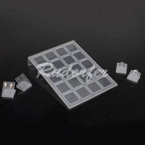 Vsebnost Pleksi podstavek (vanj ustrezajo plastični vložki 23300-prstan in 23500-uhan, vanj se lahko vloži 20 plastičnih vložkov)