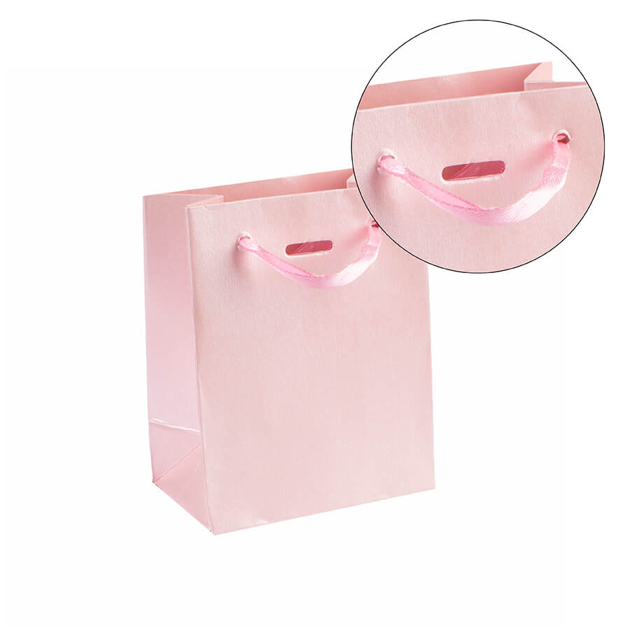 čudovita papirnata vrečka s perl sijajem in svilenim ročajem. Dodatni trak ni v kompletu z vrečko.